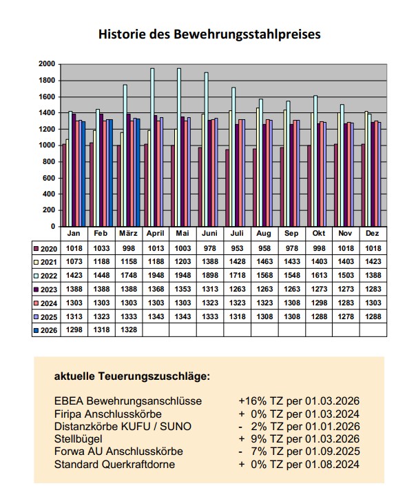 BEWEHRUNGSSTAHLPREIS PER 1. MÄRZ 2026