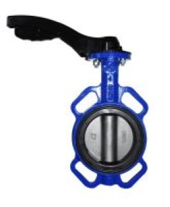Wartungsfreie Zwischenflanschklappe zentrischer Bauart, DIN DVGW-geprüft., Gehäuse GG 25, pulverbeschichtet, blau, mit Zentrieraugen, mit Alu-Rasterhebel 6 Grad, Manschette EPDM, Klappenscheibe in Edelstahl rostfrei 1.4408, Welle 1.4104, vorgesehen für den Einbau eines Thermometers, dichtschliessend, wartungsfrei, Baulänge nach EN 558 Reihe 20, Klappenhals in Isolierbauhöhe, Verwendung, Heizungsanlagen, Kälteanlagen, Brauchwasser und Sanitär, Betriebstemperaturbereich, -20 - 160 °C, Betriebsdruck max., 16 bar, Differenzdruck max., 10 bar, SVGW-Nr., 9209-2812 mehr weniger