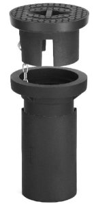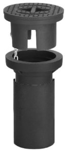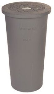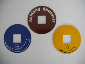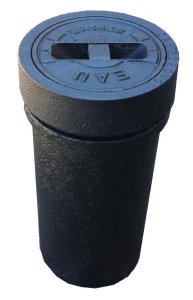 verschweisssicher, komplett, zweiteilig, verstellbar, Deckel ohne Kette, mit Kunststoffring, mit Deckelaufschrift "WASSER-EAU-ACQUA mehr weniger